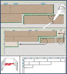 Обратите внимание каким образом происходит монтаж последних панелей. Данная схема значительно упростит Вам разметку ламинированной доски.