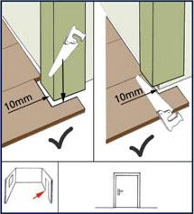 При ремонте дверные коробки необходимо устанавливать в самую последнюю очередь. Если у Вас уже установлены дверные коробки, то необходимо сделать подпил таким образом, чтобы на ламинат не оказывалось давления и не было жесткого крепления к основанию.