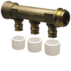 Коллектор предназначен для равномерного распределения воды от основного трубопровода (стояка) к потребителям (смесители, унитаз, стиральная машина и т.д.). Коллекторы бывают с 2-мя, 3-мя, 4-мя выходами. Если потребителей (сантехприборов) больше чем 4, то подбираются коллекторы с нужным количеством отводов и скручиваются между собой.
