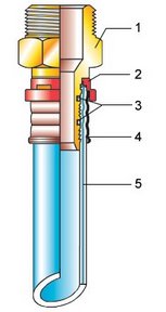 На конец трубы надевается гильза из нержавеющей стали. Затем в трубу до упора вставляется фасонная часть фитинга.